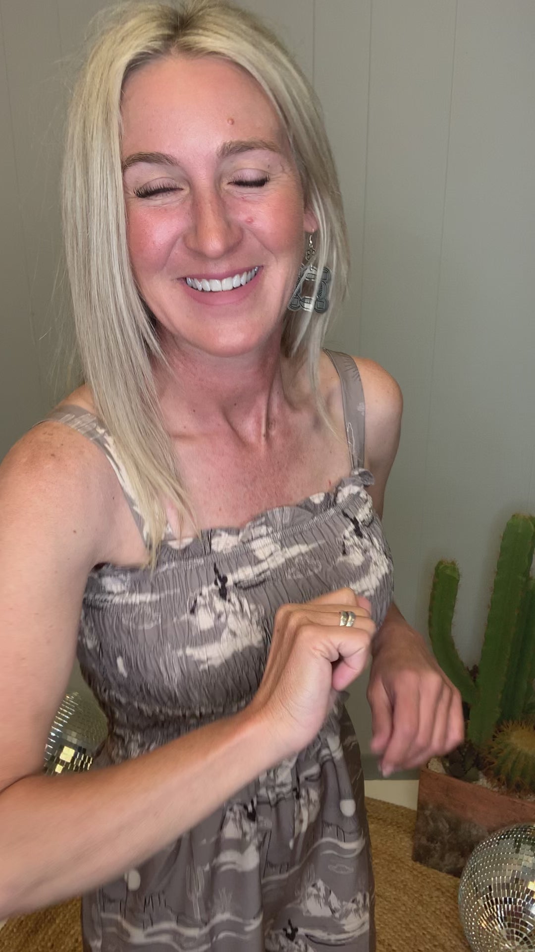Desde el amplio estampado del desierto hasta los encantadores volantes y el divertido largo, el Remuda Romper ofrece estilo y comodidad. Con la ventaja adicional de los tirantes incluidos, este adorable vestido es perfecto para cualquier ocasión. ¡Abraza la belleza de la naturaleza y eleva tu guardarropa con esta pieza imprescindible!