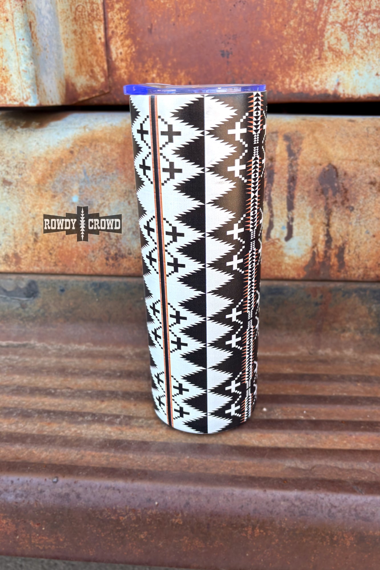 The Tulsa King Tumbler is a stylish black and white aztec, accented with warm rust tones that add a unique touch. The eye-catching design is sure to have everyone at the tailgate asking where you got that cup!
