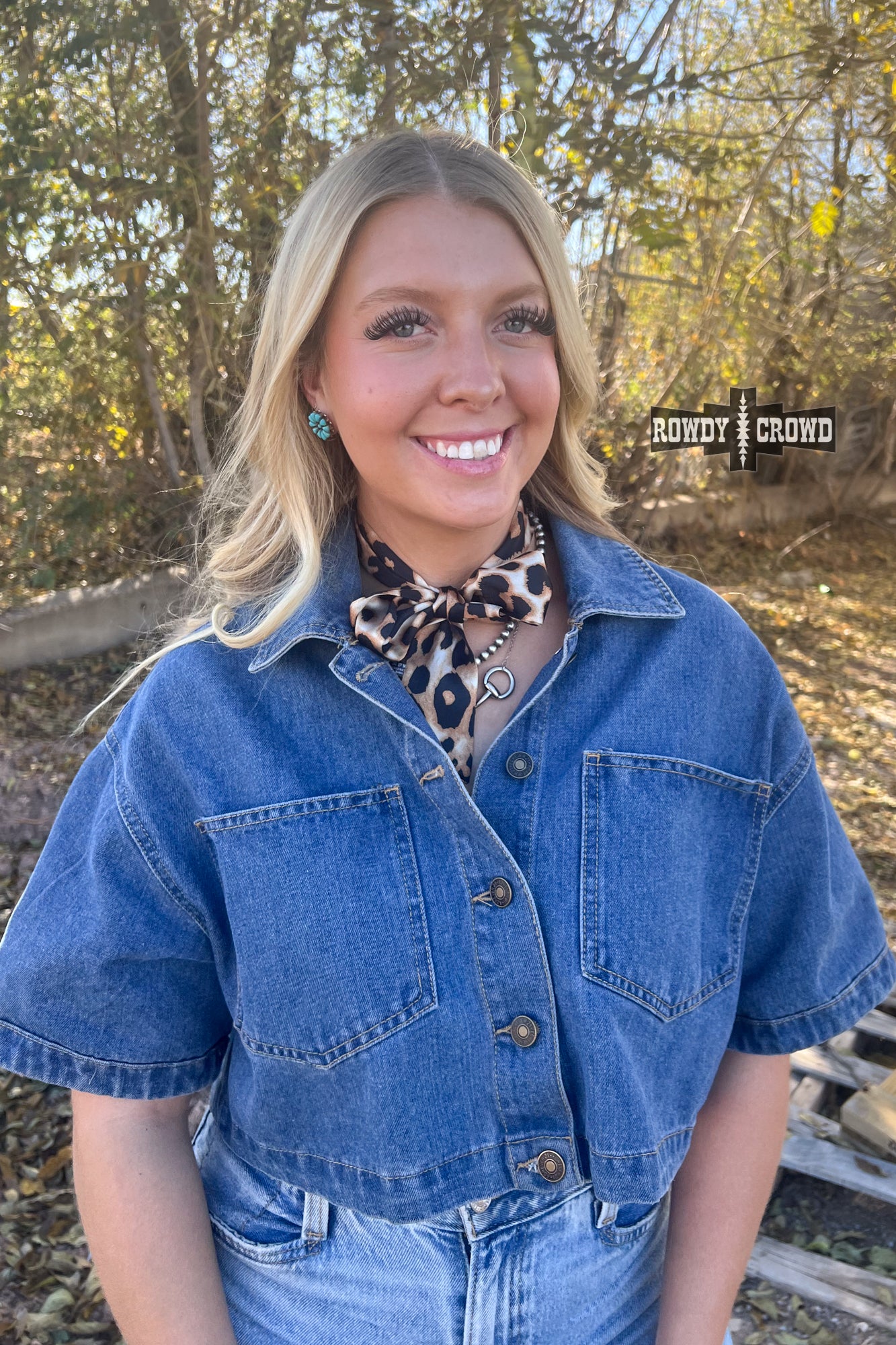 The Wild Valley Twillie is the perfect pop of punchy western flair. This silky, narrow scarf features a bold desert-toned leopard print that ties beautifully around your neck, hat, wrist, or even your favorite bag. Its lightweight feel makes it an easy everyday accessory, adding just the right mix of wild and chic to any outfit.